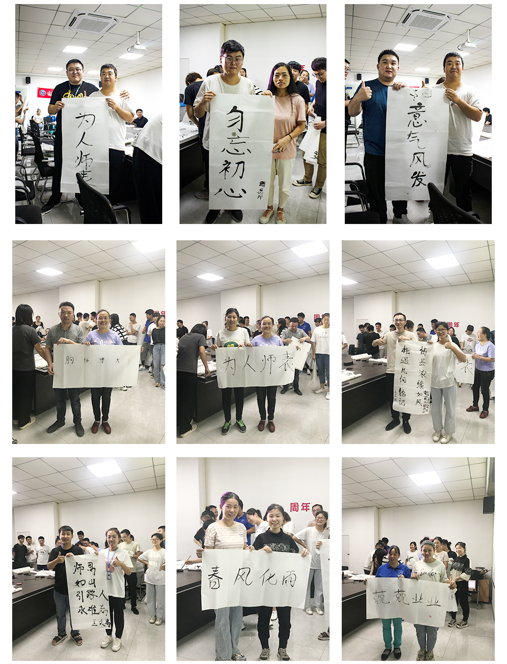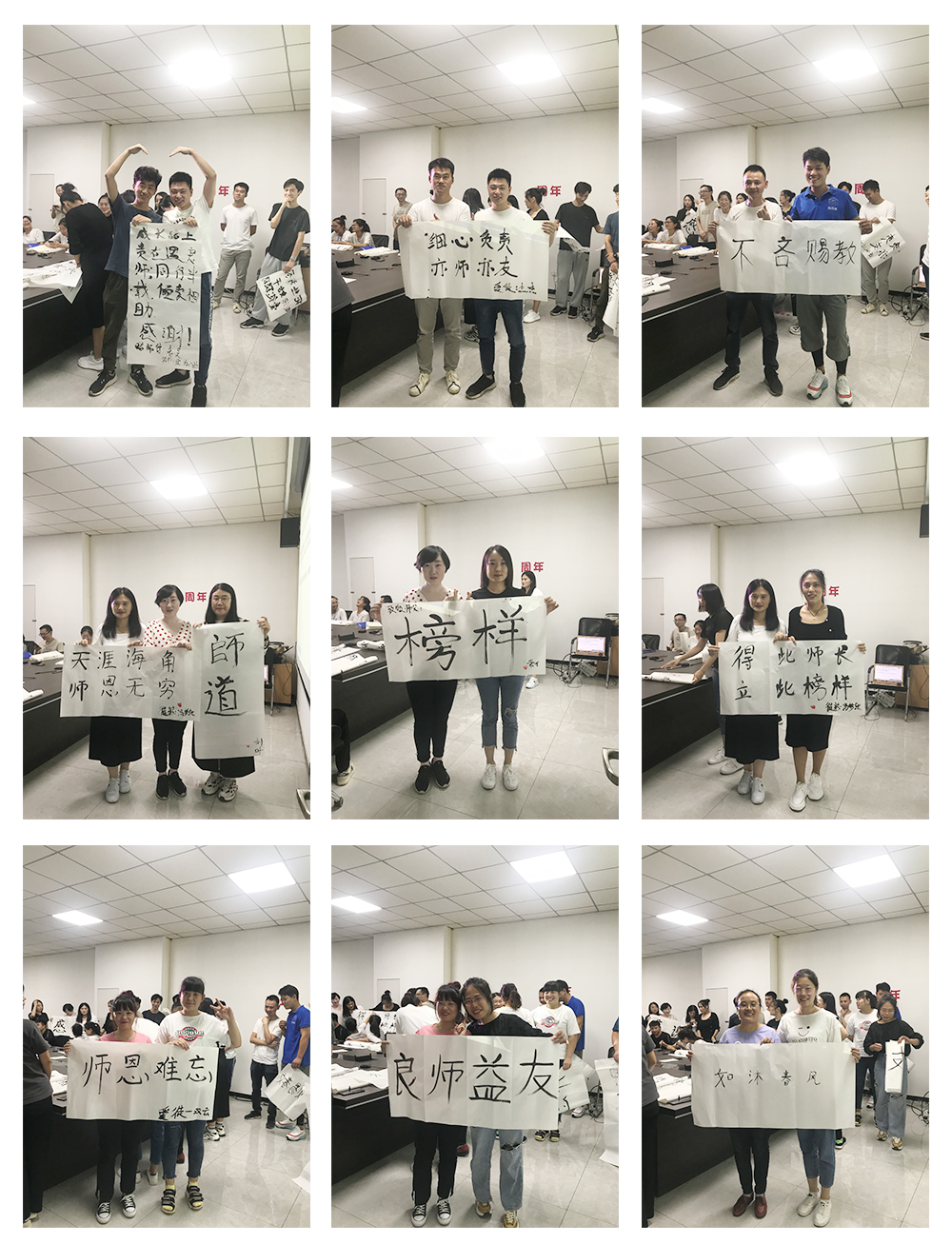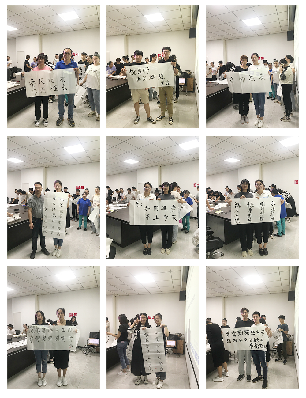 第二個環節是徒弟為師寫一幅字,表達對師的感恩與敬意。此期間師與徒弟共同完成書法,徒弟將書法雙手獻給自己的師,并與師合影留念。濃濃的師徒情誼感染了在場的每一個人。相信在以后的工作中也定會師徒齊心,完成前方的困難與挑戰。